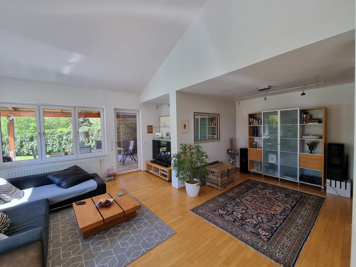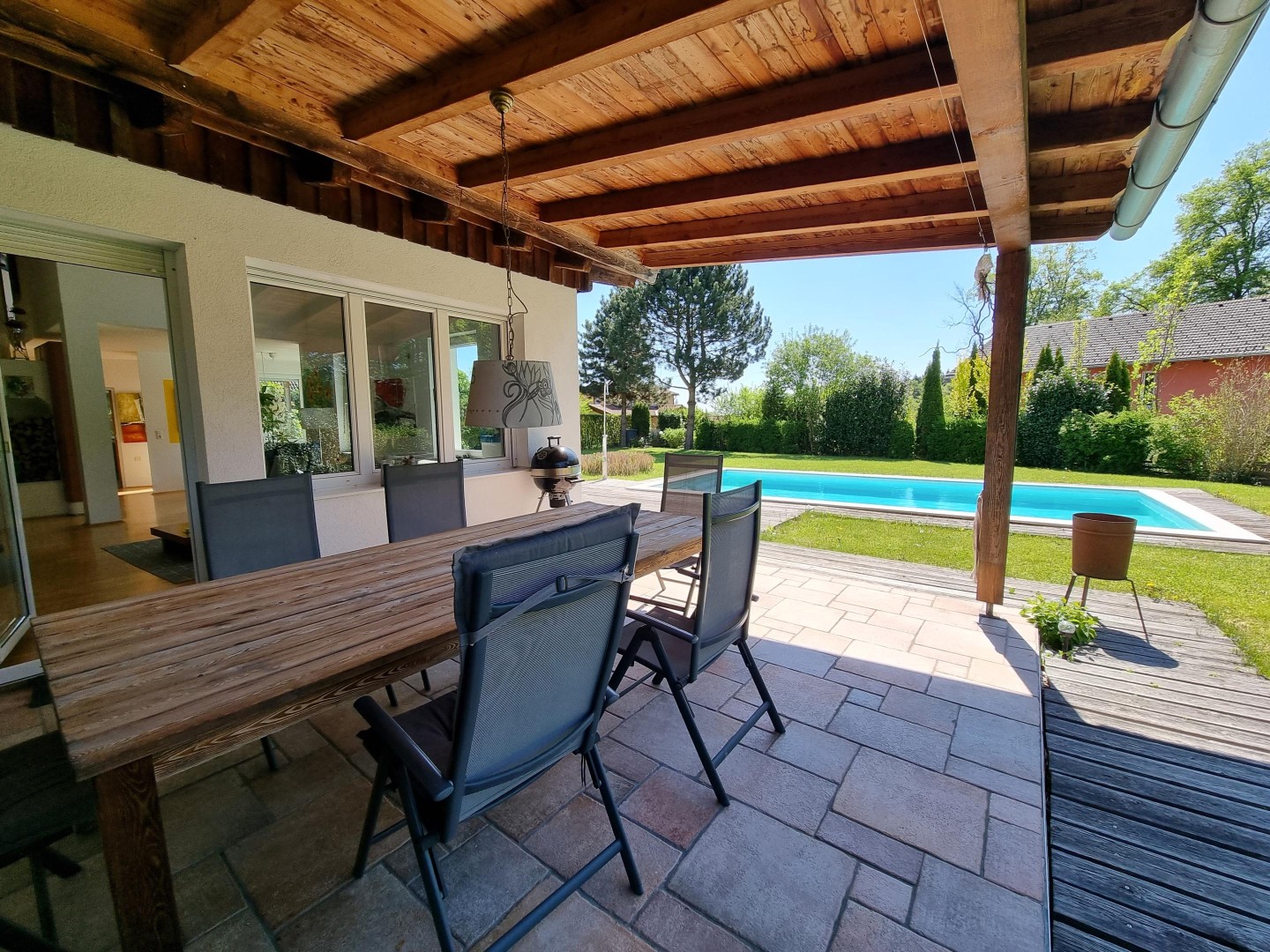 - Zugang zur sehr großen, überdachten Terrasse mit Blick in den Garten