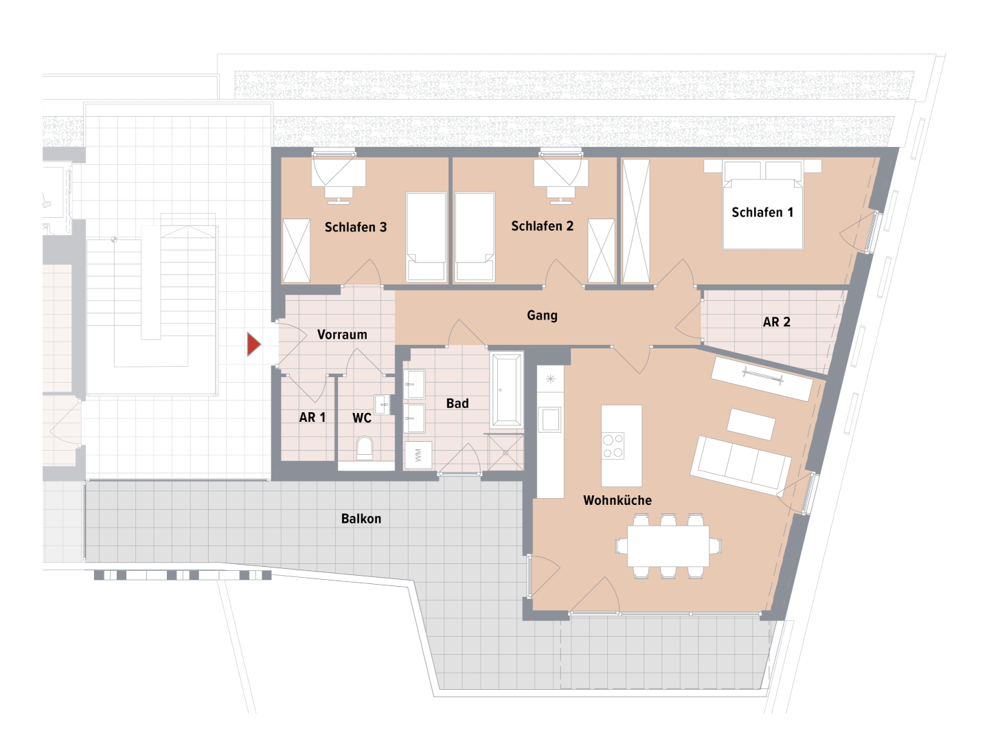 - Jede Einheit mit Balkon, Terrasse oder Eigengarten
